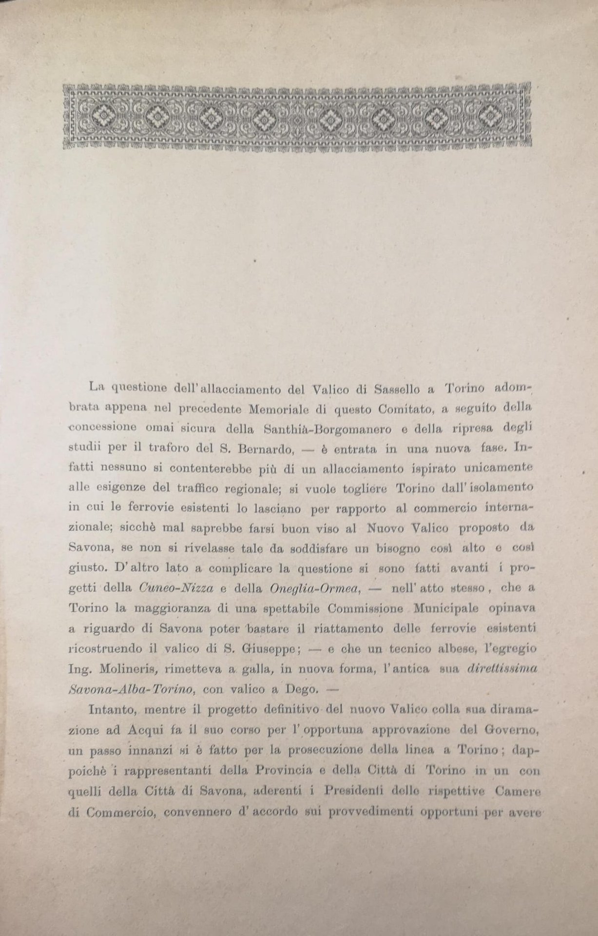 SULL'ALLACCIAMENTO DEL PORTO DI SAVONA A TORINO ED AI PASSI ALPINI.