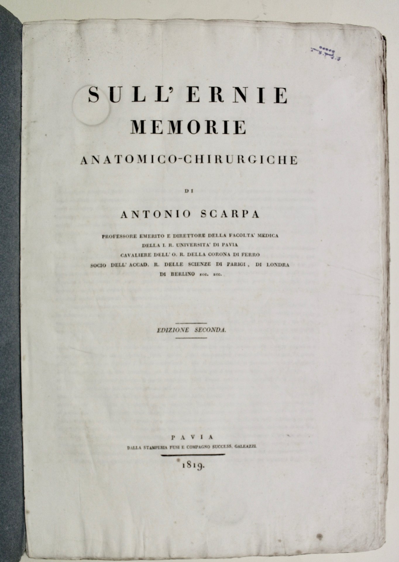 Sull'ernie memorie anatomico-chirurgiche. Unito con: Planches pour le traité des hernies de Scarpa.