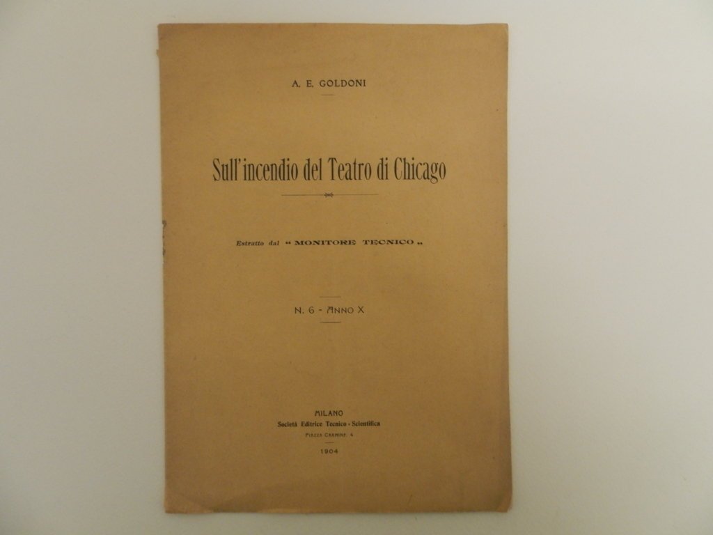 Sull'incendio del teatro di Chicago. Estratto dal Monitore tecnico. N. 6, anno X