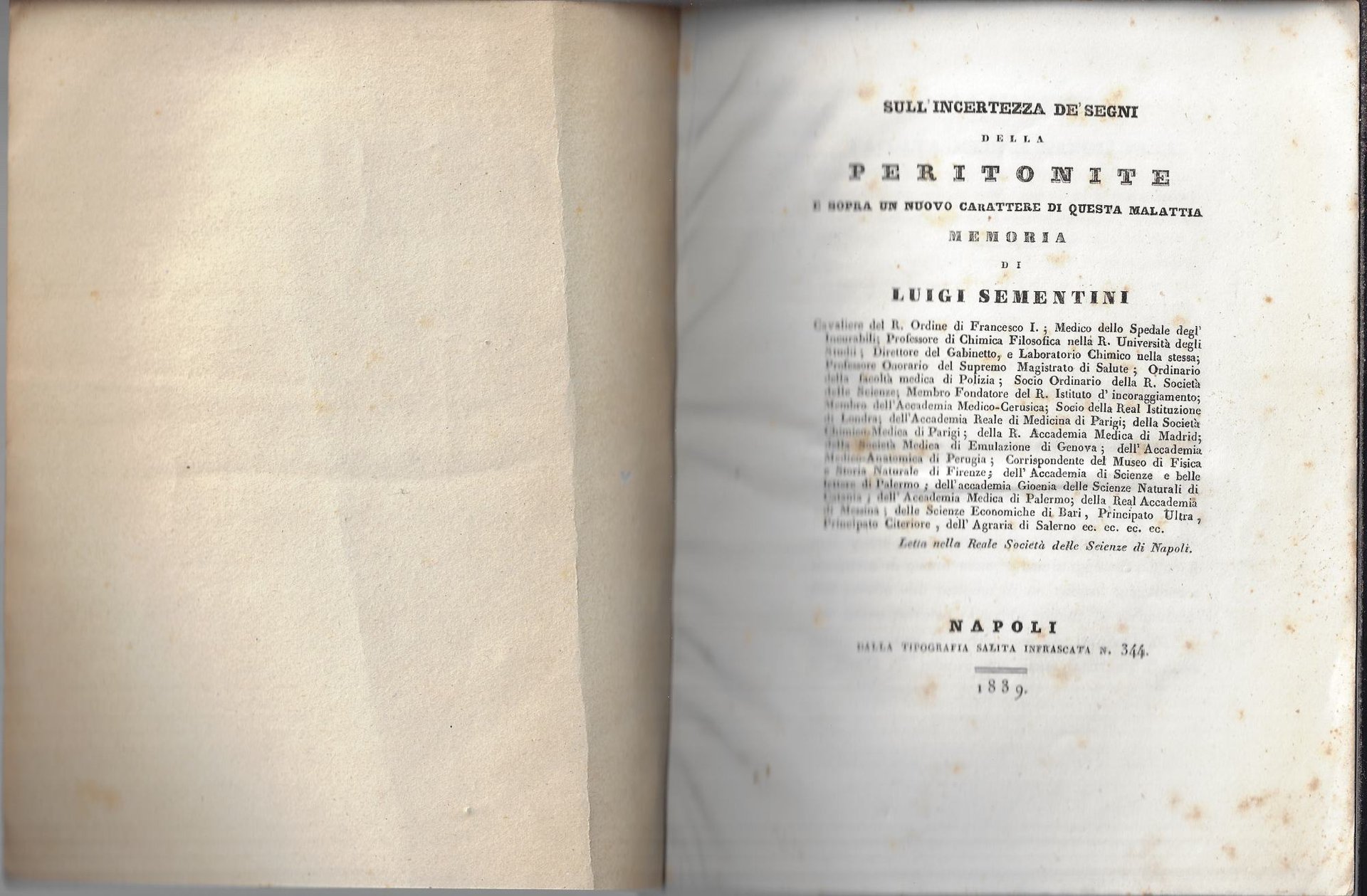 Sull'incertezza de' segni della peritonite e sopra un nuovo carattere di questa malattia