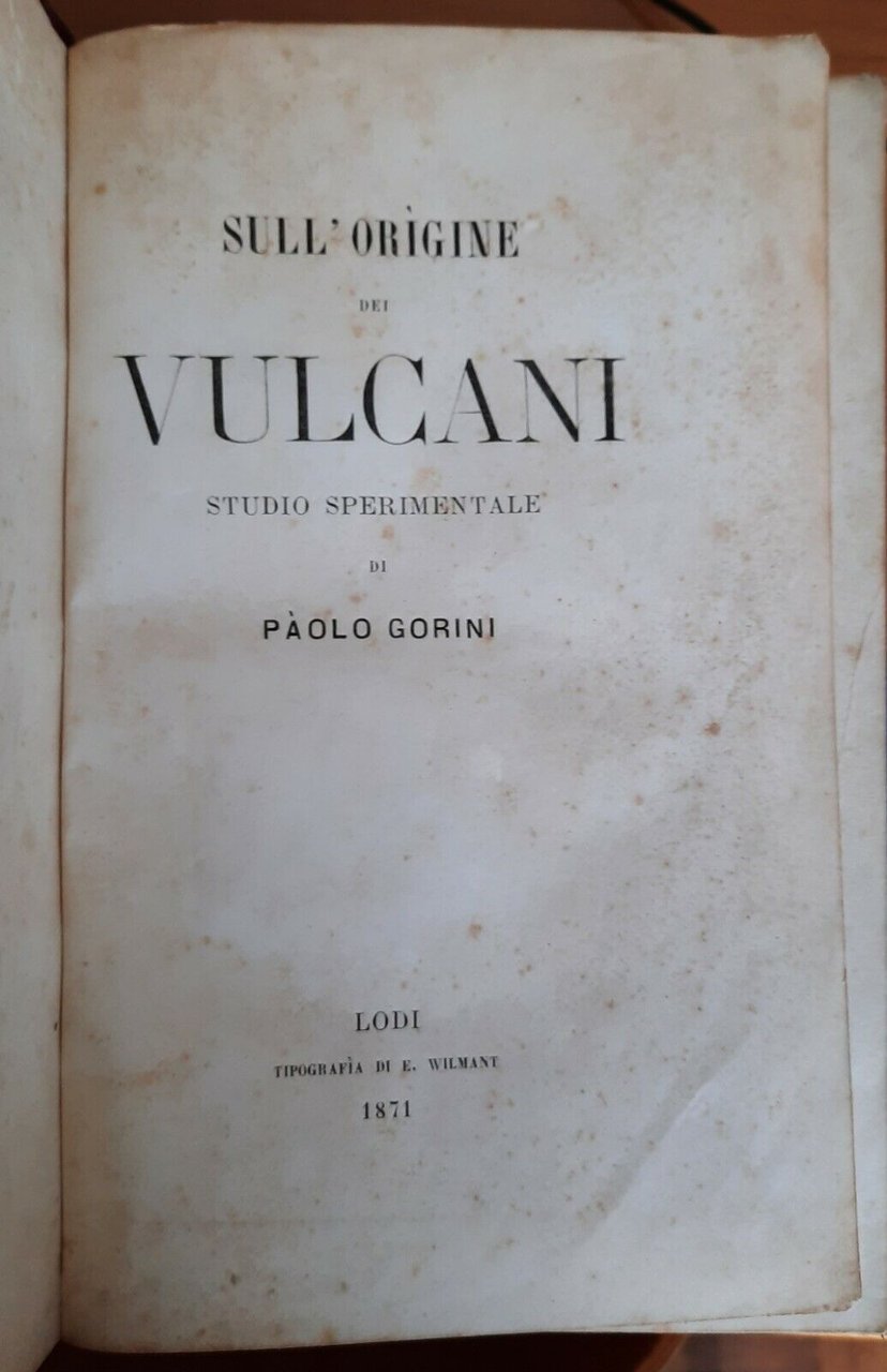 SULL'ORIGINE DEI VULCANI STUDIO SPERIMENTALE DI PAOLO GORINI LODI WILMANT 1871
