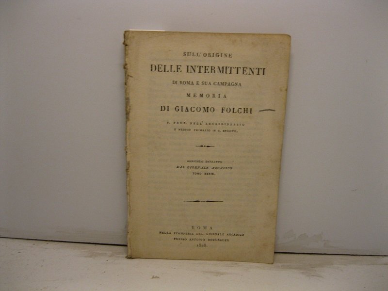Sull'origine delle intermittenti di Roma e sua campagna. Articolo estratto dal Giornale Arcadico, tomo XXXIX