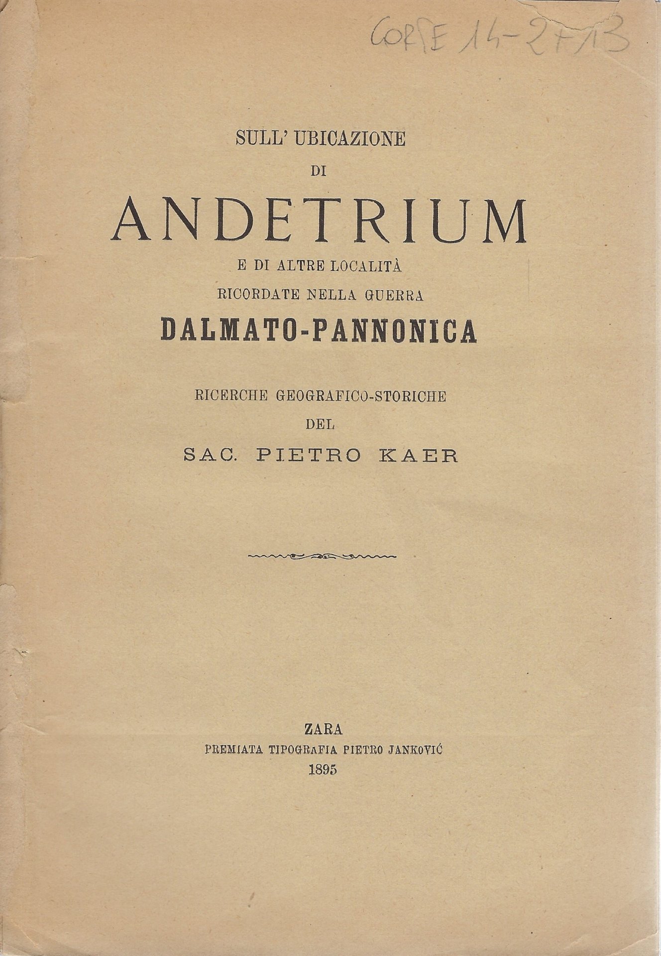 Sull'ubicazione di Andretum e di altre località ricordate nella guerra dalmato-pannonica