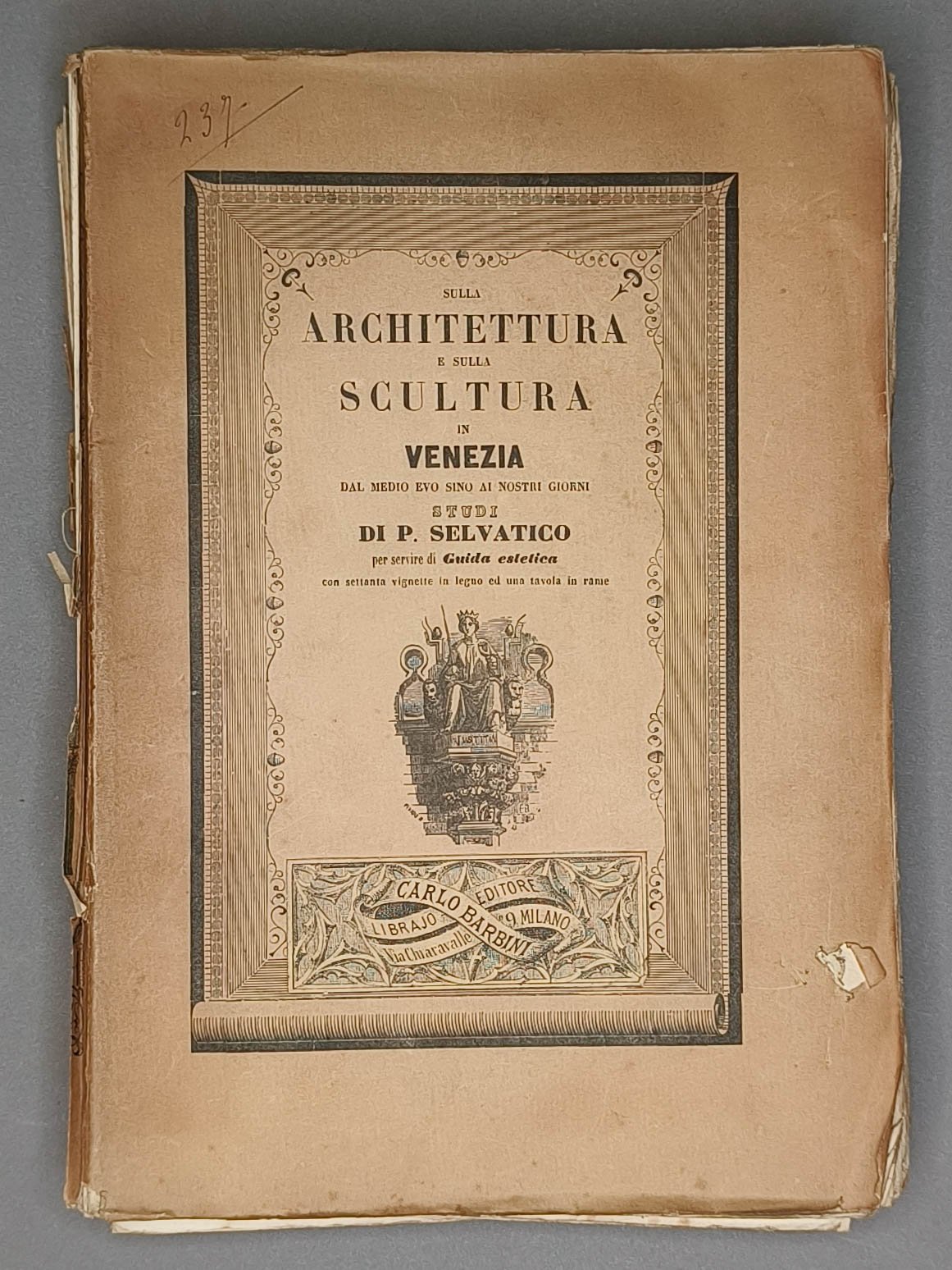 Pietro Estense Selvatico, Sulla Architettura e sulla Scultura in Venezia dal Medio Evo sino ai nostri giorni. Studi per servire di Guida estetica con settanta vignette in legno ed una tavola in rame, Venezia, Paolo Ripamonti Carpano, 1847.