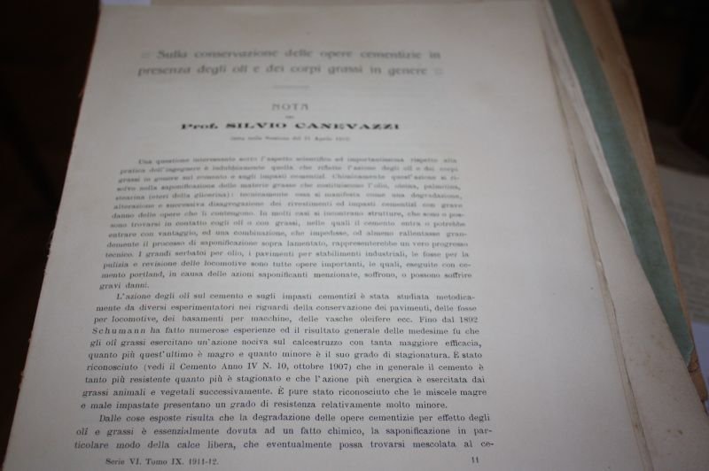 SULLA CONSERVAZIONE DELLE OPERE CEMENTIZIE IN PRESENZA DEGLI OLI E DEI CORPI GRASSI IN GENERE SILVIO CANEVAZZI 1912