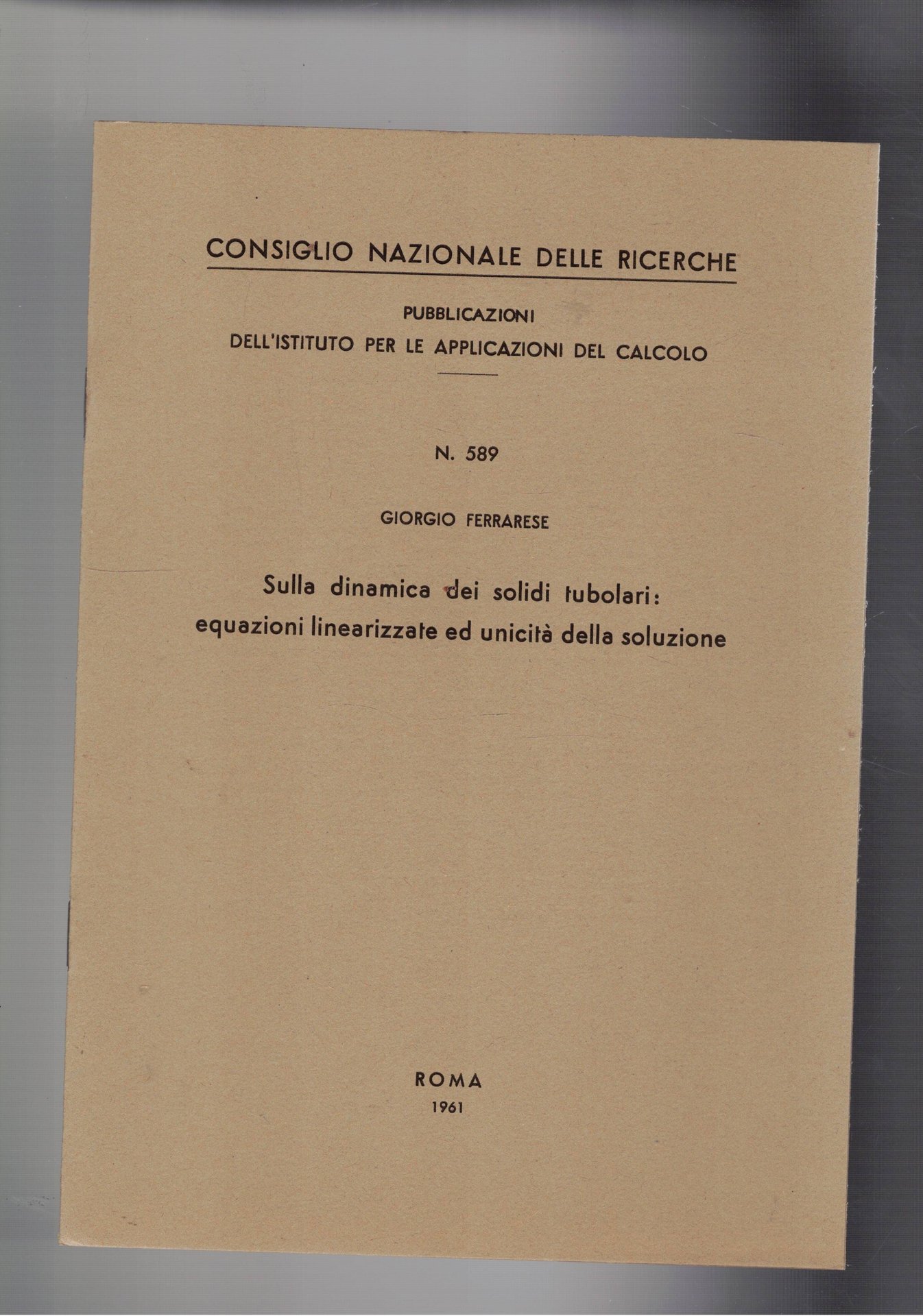 Sulla dinamica dei solidi tubolari: equazioni linearizzate ed unicità della soluzione. Estratto.