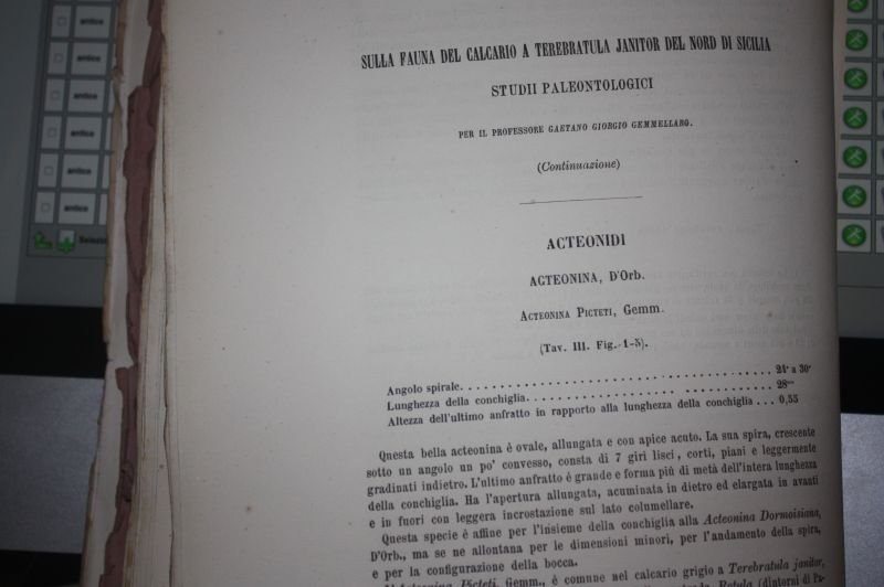 SULLA FAUNA DEL CALCARIO A TEREBRATULA JANITOR DEL NORD DI SICILIA STUDI PALEONTOLOGICI GAETANO GIORGIO GEMMELLARO