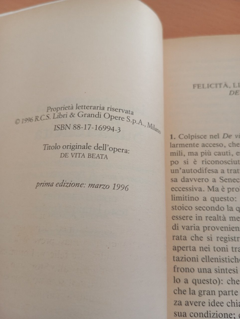 Sulla felicità, Lucio Anneo Seneca, Rizzoli BUR, 1996