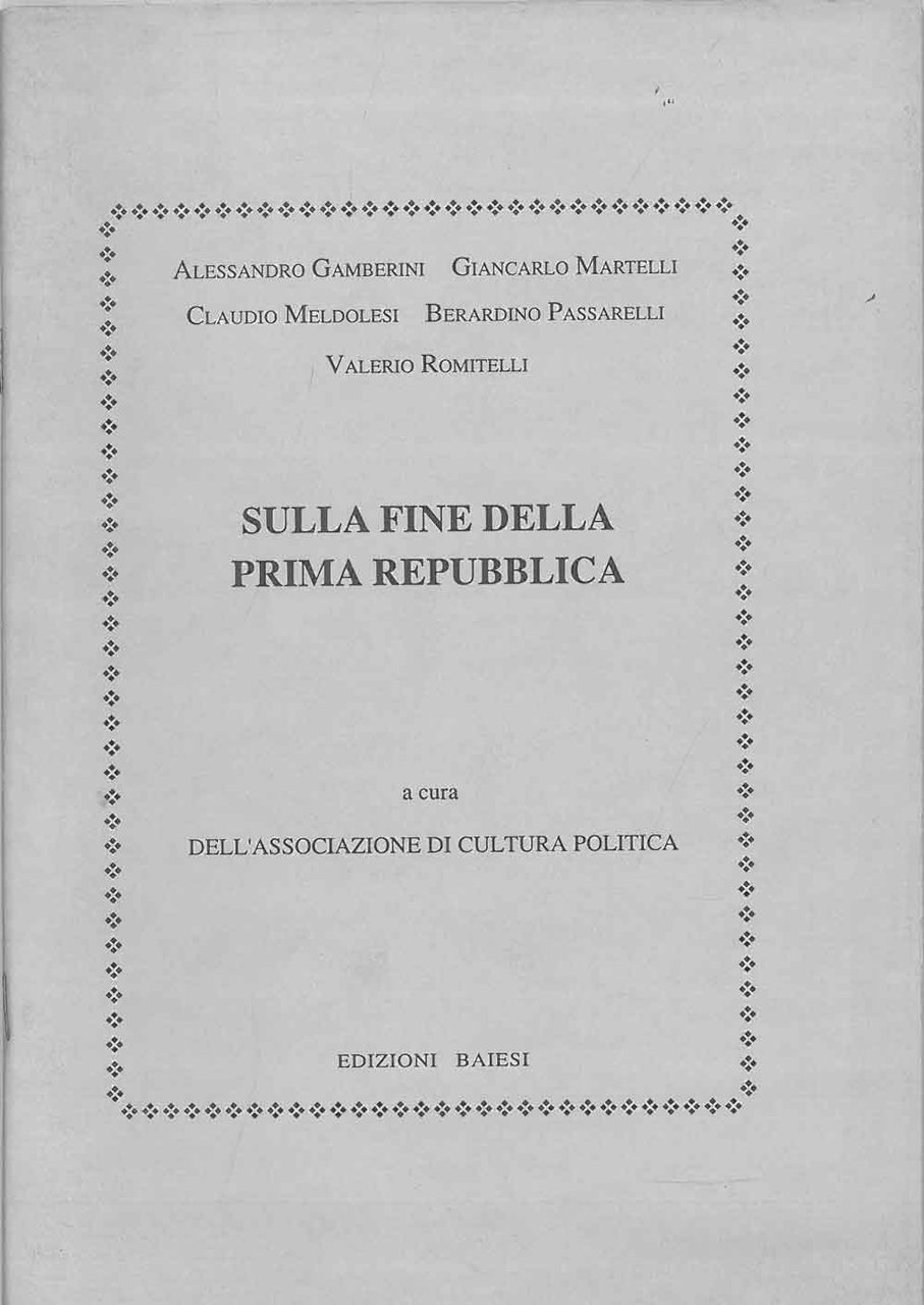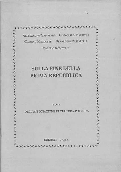 Sulla fine della Prima Repubblica A cura dell'Associazione di Cultura Politica