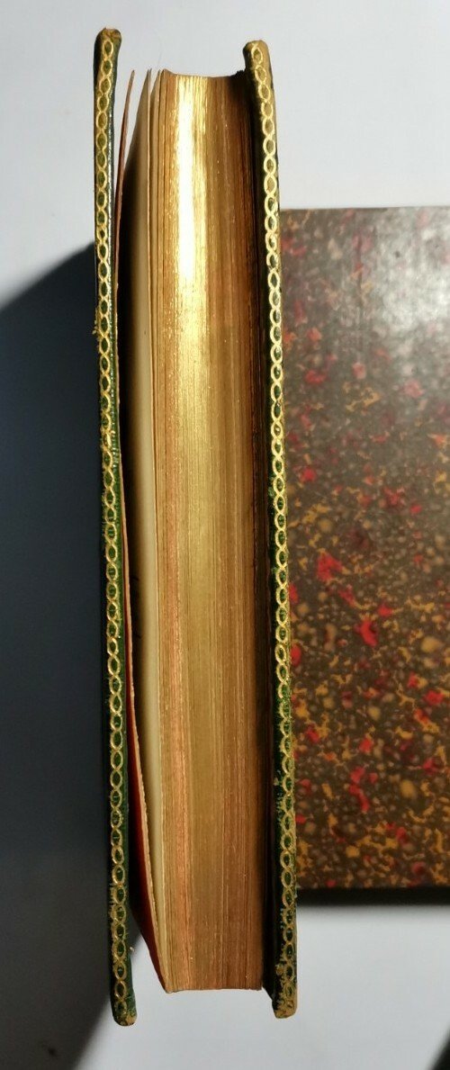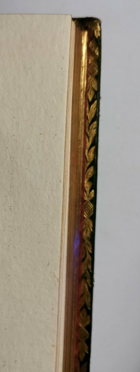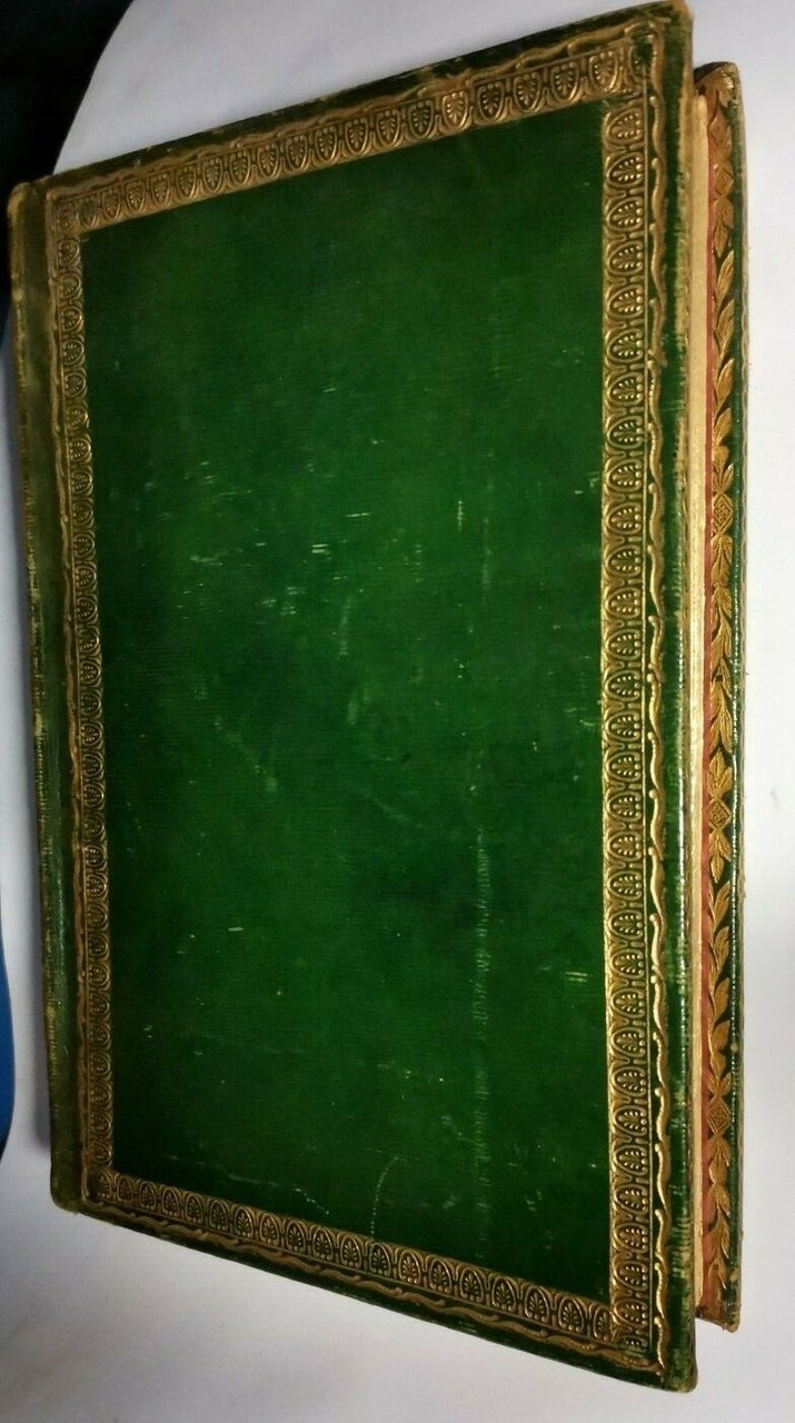 Pregevole Copertina in tutta pelle con titoli e fregi dorati al dorso, ferri dorati ai piatti e alle unghie interne e tagli dorati.
