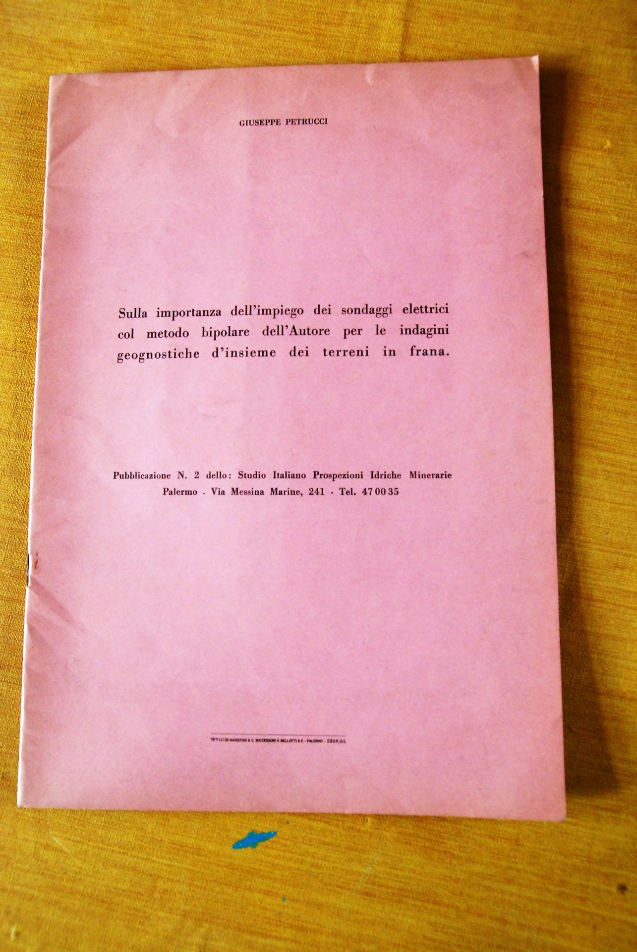giuseppe petrucci sulla importanza dell'impiego dei sondaggi elettrici col metodo bipolare dell'autore per le indagini geognostiche d'insieme dei terreni in frana. .