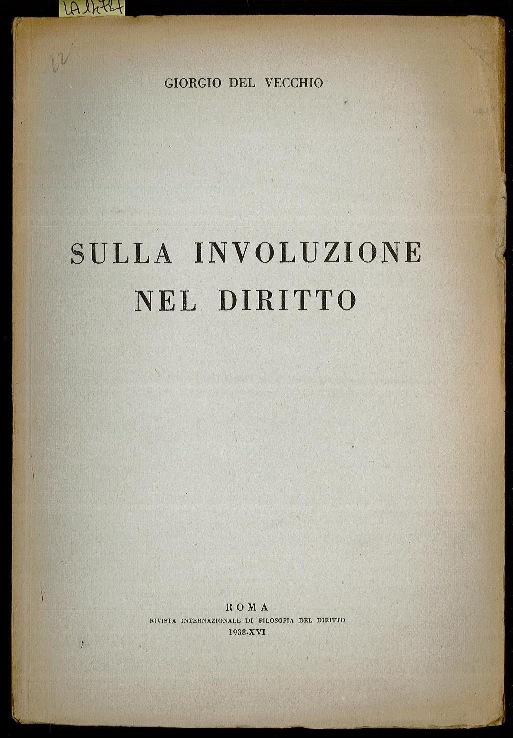 Opuscolo vintage. ESTRATTO dalla Rivista Internazionale di Filosofia del Diritto Anno XVIII – Fasc. II. Copertina ingiallita con strappetti. Usura da scaffale. Segno del tempo.