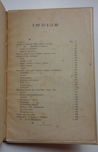 SULLA MEDICINA LEGALE DEL CADAVERE secondo gli ultimi studi di Germania ed Italia. Trattati. Tecnica, identità, fisiologia del cadavere, legislazione.