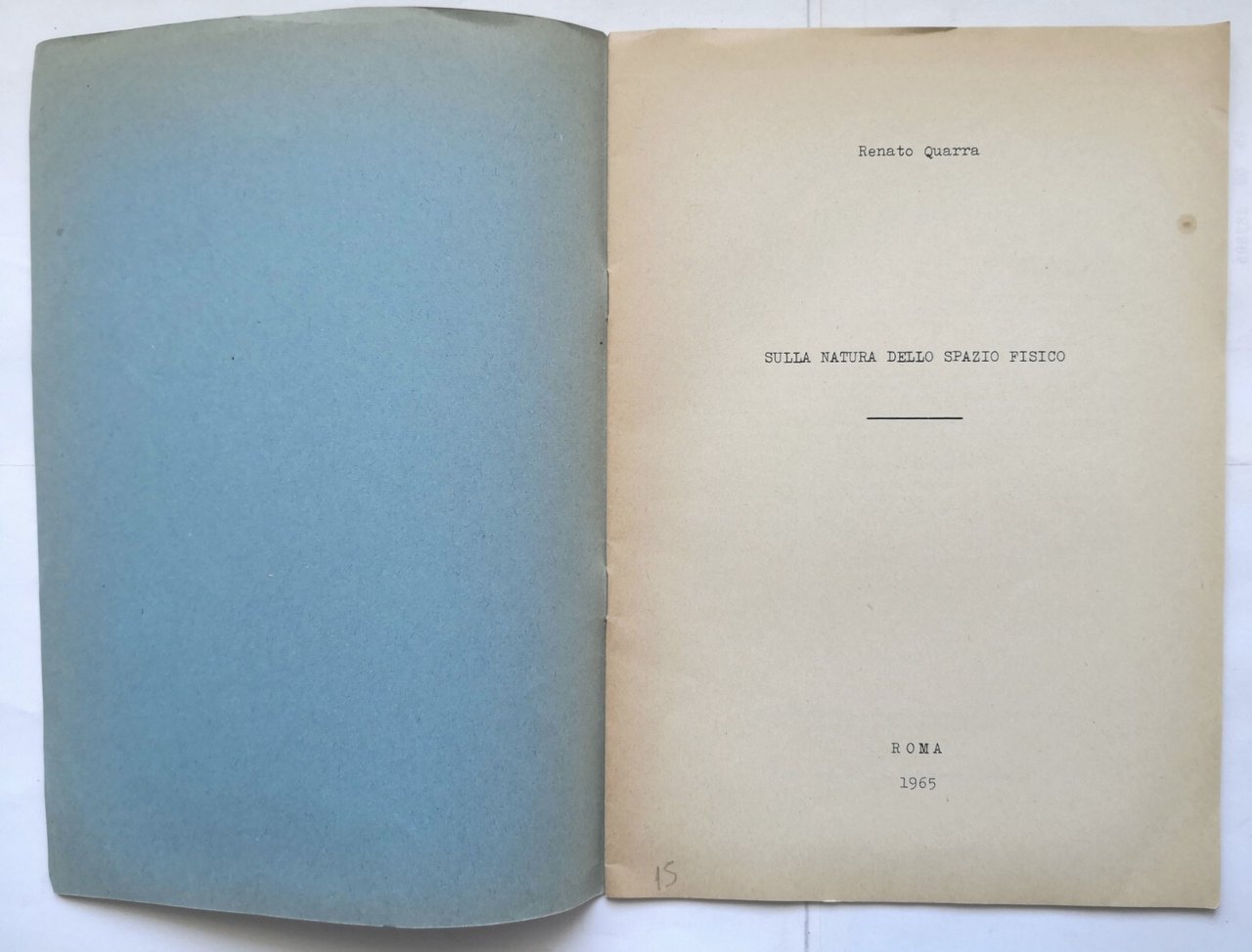 SULLA NATURA DELLO SPAZIO FISICO di Renato Quarra 1965 Alfredo Mandolini Libro