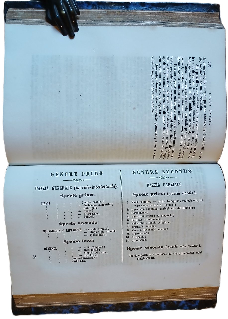 (Psichiatria - Psicologia - Psichiatri italiani dell'Ottocento - Positivismo - Malattie mentali - Manicomi) In 8°, legatura coeva in mezza pelle nera, titoli e filetti impressi a secco al dorso, carta marmorizzata ai piatti, pp. 294,(2). Prima edizione. Alcune sporadiche fioriture, per altro volume solido e ben conservato.