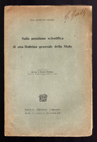 Opuscolo vintage. Estratto dalla Rivista di Diritto Pubblico Fascicolo maggio-giugno, Parte I - 1914. Strappetti sui bordi. Segni di biro in copertina. Usura da scaffale. Ordinario segno del tempo.