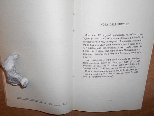 Lenin. Roma, Edizioni rinascita, 1949. Sulla religione. In-16°, br. orig. 70 pp. Opuscolo in ottimo stato di conservazione protetto da velina trasparente. Neg. scat. 2 opusc. nonn.
