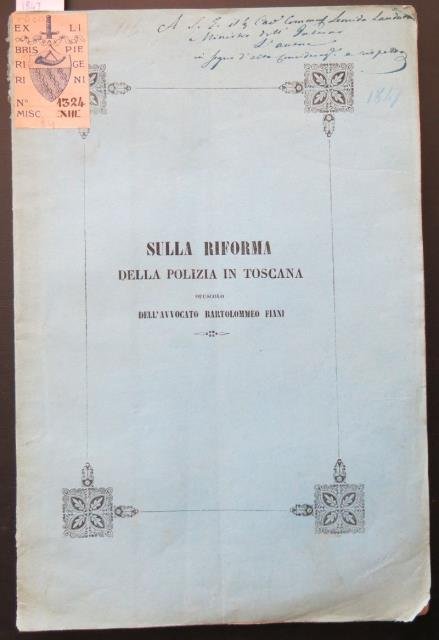 Sulla riforma della polizia in Toscana. Opuscolo dell'Avvocato Bartolomeo Fiani.
