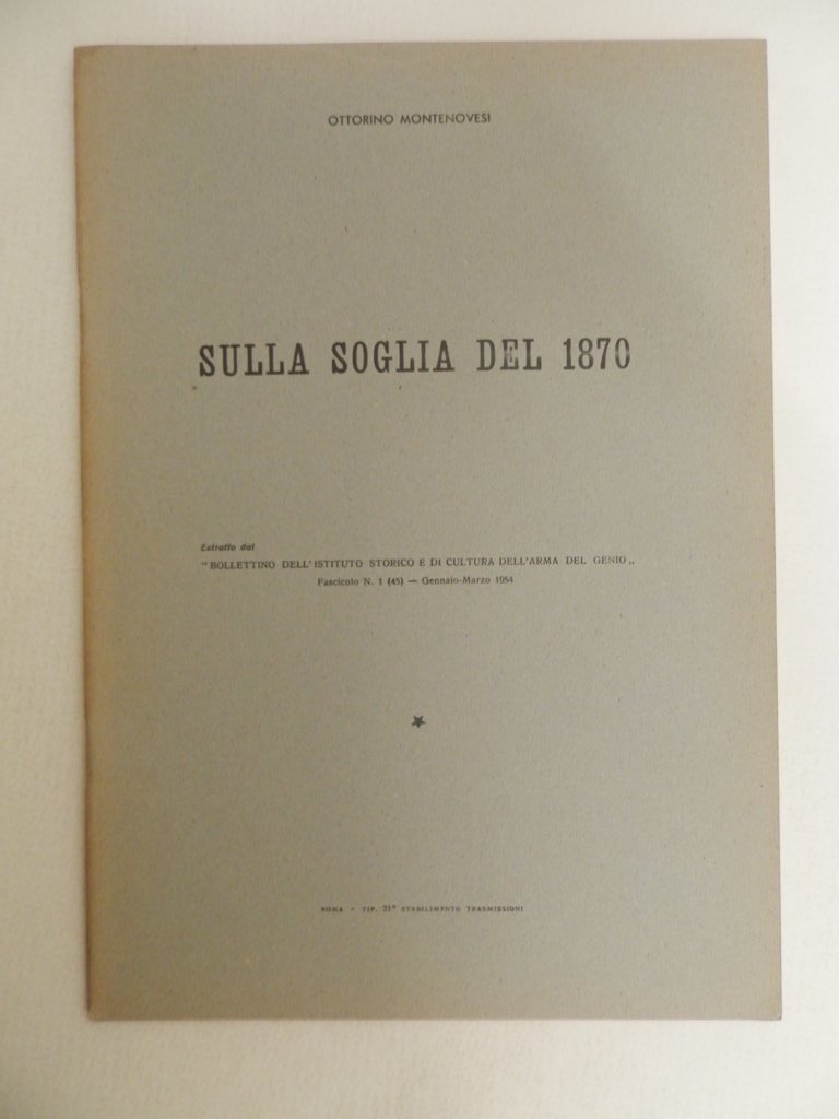 8^, pp. 27, brossura editoriale, titolo al piatto, Estratto dal bollettino dell'Istituto storico e di cultura della Arma del Genio, gennaio marzo 1954. numerose fotografie, esemplare ottimo. *** TUTTI I NOSTRI LIBRI SONO VISIBILI PREVIO CONTATTO MAIL O TELEFONO NELLA NUOVA SEDE DI MILANO: LIBRERIA COSMOPOLIS, VIA JOMMELLI, 22. ***