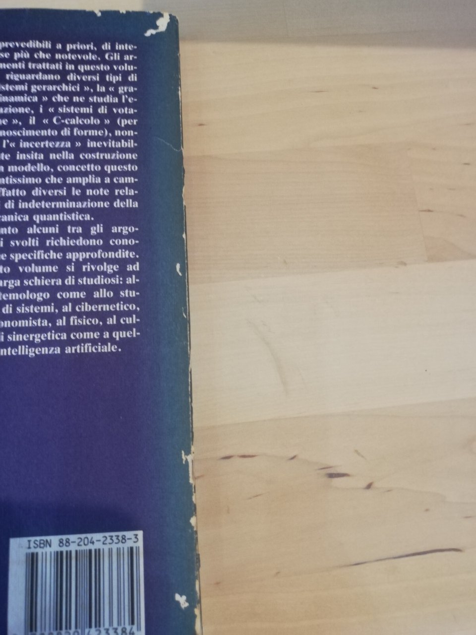 Copertina con segni di usura, scoloritura verso il dorso e macchie di umidità estese alla parte superiore esterna delle prime pagine, come da foto.