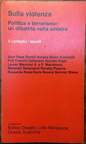 Prefazioni di Enrico Deaglio, Lidia Menapace, Oreste Scalzone. Interventi di Asor Rosa, Paolo Franchi, Gabriele Giunchi, Gianni Borgna, Goffredo Fofi, e altri. Molto buono (Very Good). Bross. ed., in-16, xxiii+169 pp, normali ingialliture