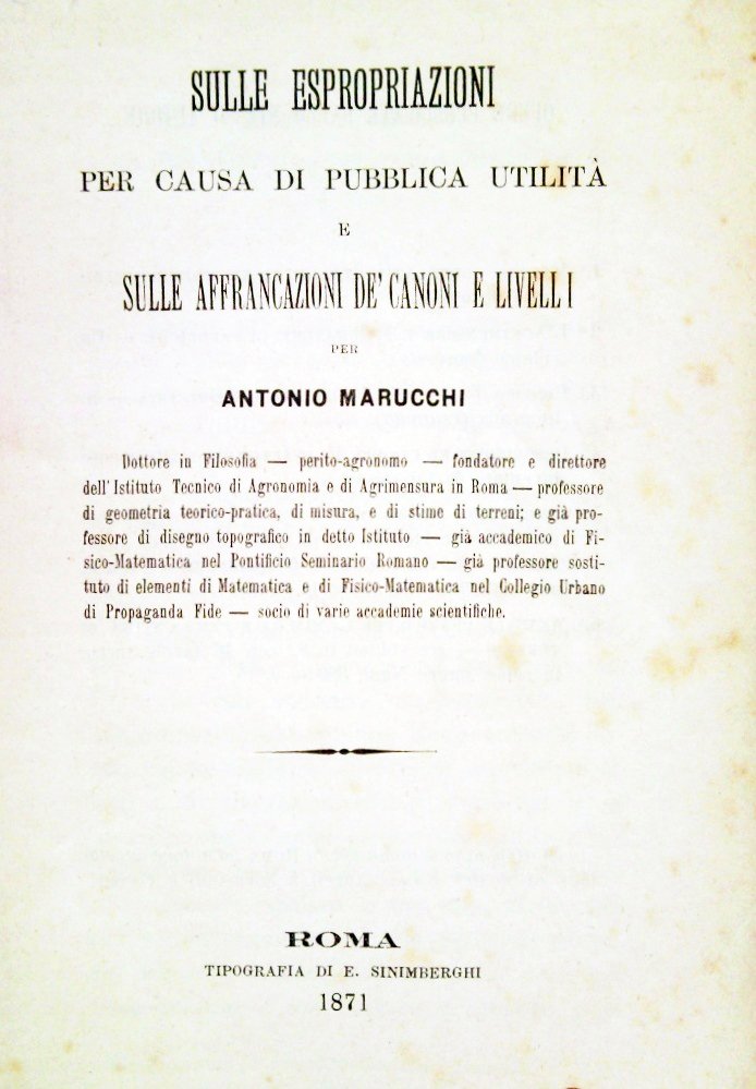 Sulle espropriazioni per causa di pubblica utilità e sulle affrancazioni de' canoni e livelli per A. Prof. Marucchi