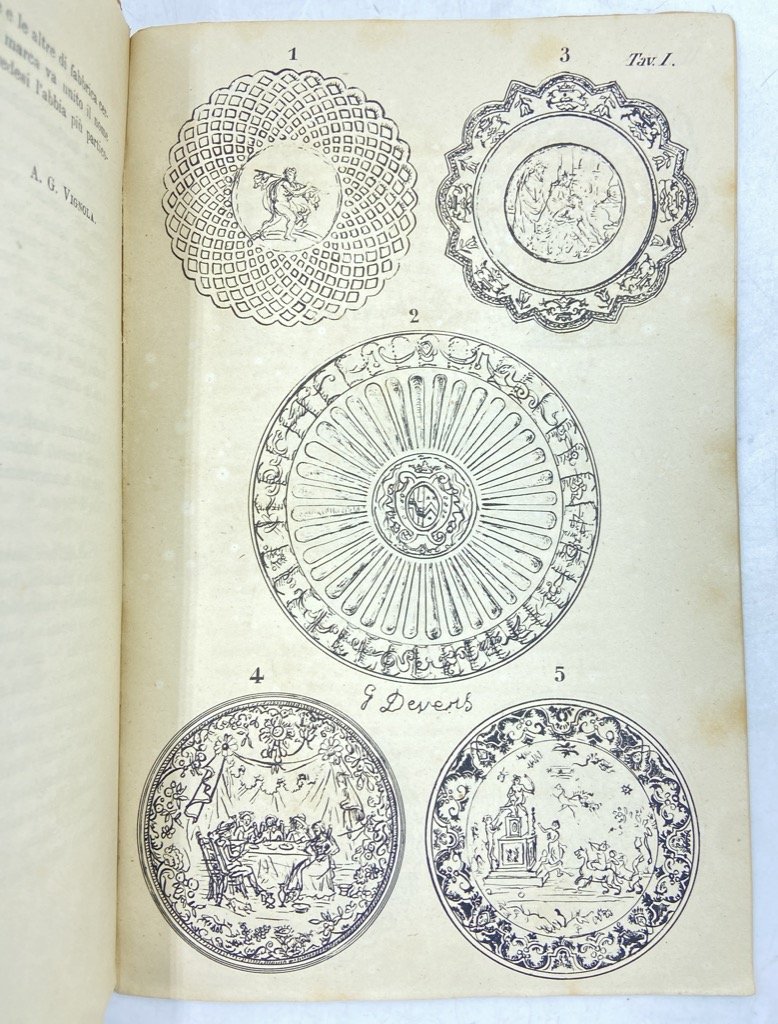 SULLE MAIOLICHE E PORCELLANE DEL PIEMONTE CON UNA APPENDICE SULLE ANTICHE MAIOLICHE DI SAVONA. CENNI STORICI ED ARTISTICI DELL’AVVOCATO GIOVANNI VIGNOLA.