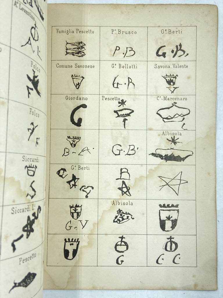 Brossura editoriale a stampa (sciupata), in ottavo cm 24 x 16, pp 62 (2) + 4 tavole in nero. Esemplare da studio, con vistosi difetti: segni d’usura sulla brossura, dorso fessurato e in parte mancante, aloni sui piatti, e gore su due tavole. Memoria, estratta dalle Curiosità e ricerche di storia subalpina (Volume III, puntata XI), relativa alla ceramica piemontese dal XVI al XIX secolo (Torino, Vische, Vinovo, Mondovì), con un’appendice su Savona. Due tavole con illustrazioni di manufatti e due, stampate entrambe al recto e al verso, di riproduzioni di marchi.