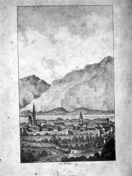 in-8, pp. 159, leg. mod. m. tela con angoli, carta dec. ai piatti, tass. al d. Bella veduta di Venzone inc. in litogr. e colorata (litogr. Bertelli) e con 14 belliss. tavv. litogr. a colori al fine raffiguranti vari aspetti delle mummie, una carta topografica del territorio, e la pianta ripiegata del Duomo. Documentata storia del ritrovamento di alcune mummie nei pressi dell’antichissima cittadina friulana di Venzone, e loro descrizione. Belliss. esempl. a larghi margini. Rara opera pubblicata in soli 300 esempl. [MM4-274]