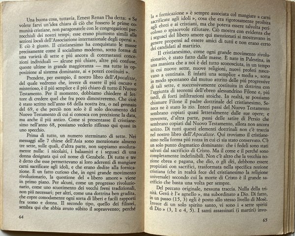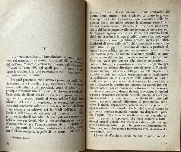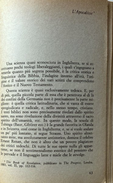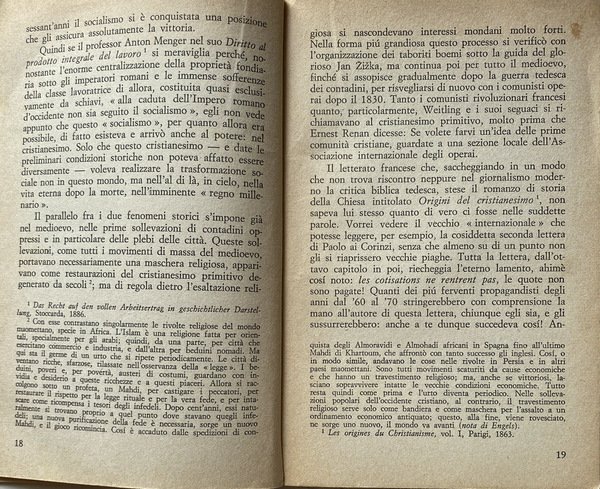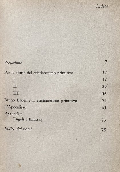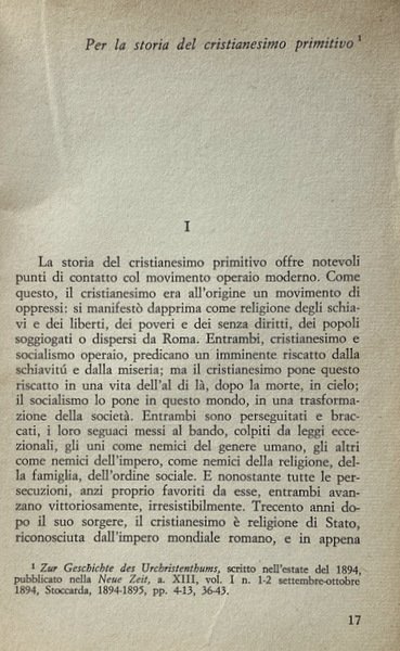 Soggetti: Filosofia, Marxismo, Religione cristiana, religioni, Cristianesimo primitivo, Critica marxista, Storiografia, Interpretazione storica, Origini, Bruno Bauer, Bibbia, Vangeli, Apocalisse, Atti, Apostoli, Giovanni, Spiritualità, Chiesa antica, Kautsky, Ottocento, Lettere, Epistolario, Corrispondenza, Scambi epistolari, Dibattiti, Polemiche, Riflessioni, Neue Zeit, Riviste, Intellettuali, Protestantesimo, Cattolicesimo, Ortodossia, Ebraismo, Ebrei, Karl Marx, Materialismo storico, Dialettica marxista, Storia contemporanea, Capitalismo, Economia politica, Opere generali, Saggi critici, Letture critiche, Teorie filosofiche, Classici, Comunismo, Proletariato, Borghesia, Lotta di classe, Russia, Germania, Inghilterra, Francia, Unione Sovietica, Internazionale, Novecento, Fonti, Bibliografia, Riferimento, Consultazione, Collezionismo, Interpretazione, Sistemi marxisti, Surplus, Classi sociali, Lavoro, Schiavitù, Sfruttamento, Rivoluzione, élite, Ceti dominanti, Stato, Antropologia, Nuovo Testamento, Primitiva letteratura cristiana, Patristica, Vita di Gesù, Strauss, Ideologia, Movimento operaio, Oppressi, Schiavitù, Schiavi emancipati, Poveri, Diritto, Socialismo, Salvezza, Miseria, Morte, Trasformazione, Società, Perseguitati, Famiglia, Ordine sociale, Persecuzioni, Impero romano, Pietismo, Giudaismo, Zur Geschichte des Urchristentums, Buch Daniel, Apostelgeschichte, Apokalypsen, Monoteismo, Babilonia, Pretoriani, Weltreligion, Judentum, Nerone, Nuova Gerusalemme, Scuola di Tubinga, Peccati, Tacito, Battesimo, Regno millenario, Teologia, Ireneo, Israele, Isaia, Dogmatica, Paganesimo, Fonti bibliche, Martiri, Agnello, Caldei, Etica, Morale, Rapporti di produzione, Classi sociali, Lotta di classe, Miti, Servaggio, Coscienza, Progresso, Credenze, Erasmo da Rotterdam, Melantone, Lutero, Riforma, Tradizione, Liberazione, Sfruttamento, Libertà, Manoscritti, Mar Morto, Qumran, Deissmann, Bouset, Loisy, Masse, Messia, Messianismo, Proprietà, Ricchezza, Potere, Mahdi, Medioevo, Islam, Crociate, Infedeli, Guerre, Fede, Rivolte, Riti, Rituali, Ernest Renan, San Paolo, Corinzi, Luciano di Samosata, Gesù Cristo, Asia Minore, Grecia, Poleis, Concilio, Nicea, Mosè, Balaam, Pergamo, Dio, Sacrificio, Abramo, Galba, Imperatori, Claudio, 666, Numerologia, Ferdinand Benary, Nerone, Cesare, Augusto, Daniele, Gematriah, Geometria, Palestina, Filone, Dottrina, Fornicazione, Plagio, Oppio, Gfrore, Baur, Consolazione, Caligola, Enoc, Jakob Philipp Fallmerayer, Hegel, Heine, Georg Kuhlmann, Seneca, Spartaco, Lamennais, Aulo Vitellio, Otone, Zoroastro, Collezionismo, Libri Vintage rari Fuori catalogo, Philosophy, Marxism, Christian religions, Primitive Christianity, Criticism, Historiography, Historical interpretation, Origins, Bible, Gospels, Apocalypse, Acts, Apostles, John, Spirituality, Ancient Church, Nineteenth century, Correspondence, Exchanges letters, Debates, Polemics, Reflections, Magazines, Intellectuals, Protestantism, Catholicism, Orthodoxy, Judaism, Jews, Historical materialism, Marxist dialectic, Contemporary history, Capitalism, Political economy, General works, Critical essays, Critical readings, Philosophical theories, Classics, Communism, Proletariat, Bourgeoisie, Class struggle, Germany, England, France, Soviet union, International, Twentieth century, Sources, Bibliography, Reference, Consultation, Collecting, Interpretation, Marxist systems, Social classes, Work, Slavery, Exploitation, Revolution, Ruling classes, State, Anthropology, New Testament, Primitive Christian literature, Patristics, Life of Jesus, Ideology, Labor movement, Oppressed, Slavery, Emancipated slaves, Poor, Right, Socialism, Salvation, Misery, Death, Transformation, Society, Persecuted, Family, Social order, Persecutions, Roman empire, Pietism, Judaism, Monotheism, Babylon, Praetorians, Nero, Jerusalém, Tübingen school, Sins, Tacitus, Baptism, Millennial kingdom, Theology, Irenaeus, Israel, Isaiah, Dogmatic, Paganism, Biblical sources, Martyrs, Lamb, Chaldeans, Ethics, Morals, Relations of Production, Social classes, Class struggle, Myths, Servage, Consciousness, Progress, Beliefs, Erasmus of Rotterdam, Melanchthon, Luther, Reformation, Tradition, Liberation, Exploitation, Freedom, Manuscripts, Dead Sea, Masses, Messiah, Messianism, Property, Wealth, Power, Middle ages, Crusades, Infidels, Wars, Faith, Revolts, Rites, Rituals, Saint Paul, Corinthians, Lucian of Samosata, Jesus Christ, Greece, Council, Moses, Pergamum, God, Sacrifice, Abraham, Emperors, Claudius, Numerology, Nero, Caesar, Augustus, Geometry, Palestine, Philo, Doctrine, Fornication, Plagiarism, Opium, Consolation, Caligula, Spartacus, Aulus Vitellius, Zoroaster, Collectibles, Rare books Out of print