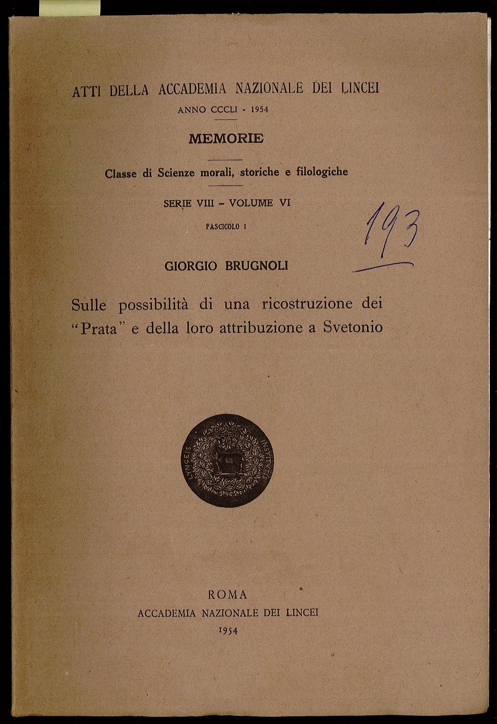 Opuscolo Vintage non rifilato. Estratto dagli atti dell’Accademia Nazionale dei Lincei, Anno CCCLI, 1954. Classe di Scienze morali, storiche e filologiche. Serie VIII, Volume VI. Note a penna in copertina. Ordinario segno del tempo.