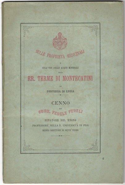 Sulle proprietà medicinali e sull'uso delle acque minerali delle RR. Terme di Montecatini in provincia di Lucca.