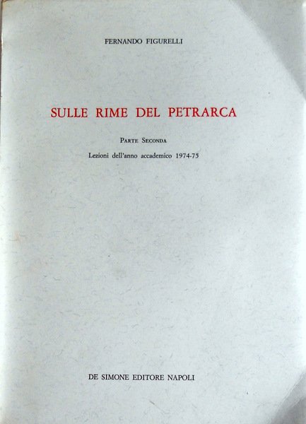 SULLE RIME DEL PETRARCA. PARTE SECONDA: LEZIONI DELL'ANNO ACCADEMICO 1974/75