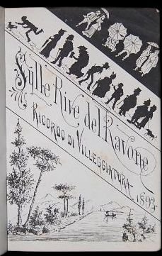 18×12,2 cm; (20), 106, (2) pp. Legatura editoriale in cartoncino rigido con nell'illustrazione in oro al piatto anteriore e al piatto posteriore. Tiratura in soli 45 esemplari. Dedica alla prima carta. Bellissimo frontespizio illustrato. Le prime 16 pagine contengono composizioni musicali inedite tra le quali uno "Scherzo per Pianoforte" di G. Brinis, la composizione "Kleinigkeit" di A. Sampieri, un "Triste idillio per canto e piano" di F. Brunetti, infine una mazurka di Giovan Battista Marcon significativamente intitolata Aurette Felsinee. Segue una miscellanea di 106 litografie con alcune immaginipaesaggistiche e soprattutto ritratti, resi mediante silhouette nere su fondo bianco di personaggi bolognesi. Alla fine del volume l'elenco completo di ogni opera presentata con il nome dell'autore o del personaggio rappresentato. Rarissima pubblicazione ricordo per coloro che nel 1893 villeggiarono sulle rive del Ravone (probabilmente proprio in località Ravone o Casaglia) nel territorio delle colline bolognesi. I personaggi che presero parte alla villeggiatura sono, in genere, appartenenti a nobili o note famiglie bolognesi. L'opera è di particolare importanza per ricostruire i gusti del pubblico raffinato e mondano bolognese che utilizzava questo tipo di produzione durante gli incontri nei salotti ad esempio come gioco, nel quale si dovevano riconoscere i bolognesi illustri riprodotti nei ritratti. Fra i ritratti Alfonso Monti, Agostino Reggiani, Alfonso Cozzolino, Andreino Ambrosini, Annibale Cazzani, Annina Antenore, Antonio Brinis, Antonio Sempieri, Carlo Ceraso, Cesare Rusconi, Colomba Cuocolo, Davide Coppola, Baronessa Editta dalla Noce, Egle Bonavita, Dino Mazzoni, Contessa Enrichetta Mengoni Ferretti, Eugenia Vespoli Cuocolo, Eugenio dalla Noce, Federico Alzona, Cav. Ing. Filippo Ambrosini, Cav. Francesco Alfano, Gaetano Ceraso,Cav. Ing. Giuseppe Guillot, Ines Fittipaldi, Laura Cazzani, Lylly Gollinelli, Conte Lodovico Bentivoglio, Maria Brunetti Capelli, Avv. Nicola Montanari, Nicola Righiery, Professor Raffaele Faccioli, Silvia Waymel Zanelli, Vico Ulivi, Vittorina Grugnoli ed altri. "Nel corso dell'Ottocento le acque del torrente, ora così poco invitanti, hanno però goduto di una qualche fama. Nel 1853 si trovano menzionate nel rapporto, curato da Francesco Sarti Pistocchi, della Commissione delle consultazioni sulle acque minerali: "Quest'acqua è limpida, facile da conservarsi e trasportarsi senza che si alteri in fiaschi e barili, è salata abbastanza, non è irritante, non nauseosa, non fetida appena estratta. Agisce allora come blando lassativo catartico, ma più come antiscrofoloso, e di fatto contiene quest'acqua tracce di iodio le quali nelle delicate costituzioni de' bambini linfatici possono riuscir bastevoli al salutare intento che si ricerca". Fu così che verso la fine del secolo a Casaglia sorse persino uno stabilimento d'acqua salino-iodata, di proprietà della famiglia Boriani, che per qualche decennio richiamò un pubblico numeroso, soprattutto nei mesi estivi." Esemplare in ottime condizioni di conservazione, tiratura in soli 45 esemplari, rarissimo. Uno spaccato della vita della vita della nobiltà ed alta borghesia bolognese di fine ottocento. Rif. Bib.: IT\ICCU\UBO\3781955.