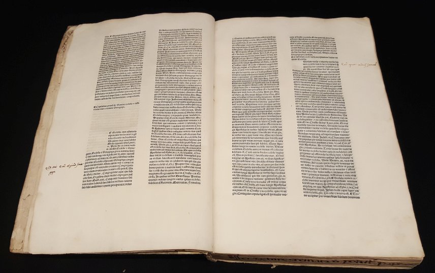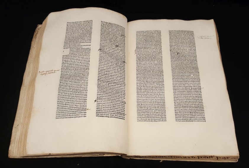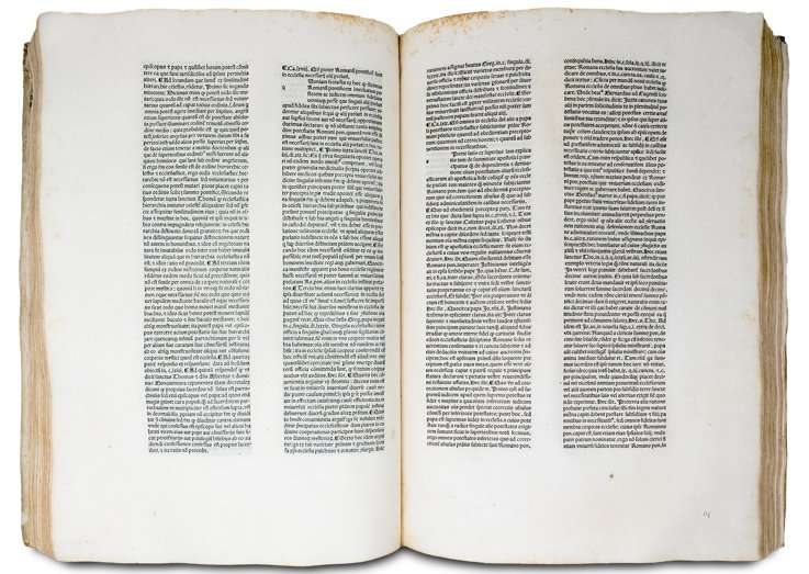 Buon esemplare a grandi margini, nitidamente impresso su carta forte; lievi fioriture marginali a pochi ff., forellino di tarlo nel margine inf. degli ultimi ff. HC 15730; BMC IV, 109: “Hain's description offers slight textual differences from the above, and his account of the preliminary matter is confusely stated. His copy is said to contain a title printed in red”. Goff T-555. IGI 9885. Bibl.Vaticana III, T-261. Bibl.Nat.Paris T-402. Pellechet 11279c. Choix d'Olschki 2263: “Il manque le premier f. contenat le titre en rouge ... Hain compte par erreur 219 ff.”. Polain 3874. Oates 1535. Howard McIlwain, The Growth of Political Thought in the West, N.Y. 1932, p.351: "The title indicates accurately the purpose and the contents of the book. Its size and comprehensiveness warrant the title of Summa, and it is clearly intended not only as a refutation of the heresies of Wycliffe and Hus to which considerable attention is given but even more as a direct answer to the contentions of the conciliarists concerning the relative powers of Pope and Council. So far as this latter question is concerned - and it was the chief question in dispute at the time - this book may be considered as probably the chief and the most authoritative presentation of the official view of the Papacy, the fullest statement of the principles of the Papalist reaction". ISTC it00555000: "Variants are recorded by Polain, Oates and in CIBN"
