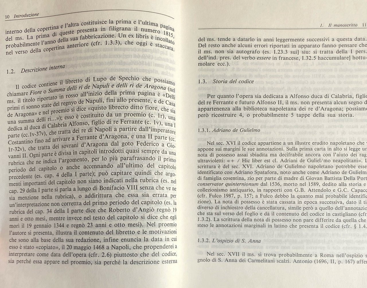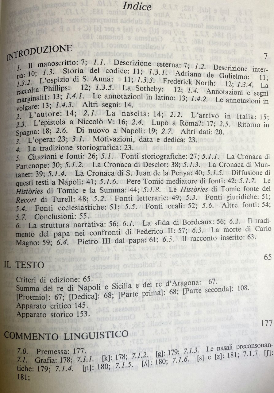 Soggetti: Linguistica Filologia Romanza Moderna Regno di Napoli Storia Genealogia Araldica XIX 66 Biblioteca Nazionale Codici Manoscritto Adriano de Gulielmo Frederick North Sotheby Roma S. Juan de la Penya Documenti Storiografia Histories Cronache Spagna Niccolò Epistole Ospizio Sant'Anna Latino Raccolta Phillips Federico II Bordeaux Carlo Magno Papato Aragona Sicilia Lingua Fonetica Bibliografia Vocalismo Metafonesi napoletana Morfologia Sintassi, Analisi Collezionismo Libri rari fuori catalogo Antichi manoscritti Rivolte Medioevo Diplomazia Lope de Espejo Raccolte Riferimento Referenze Fonti archivistiche Codice Annotazioni Latinismi Volgare Segni Epistola Opera Dedica Tradizione storiografica Citazioni Fonti storiografiche Cronaca Partenope Desclot Muntaner Testi Pere Tomic Històries Turell Letterarie Giuridiche Ecclesiastiche Orali Narrativa Papa Ferrante Ferdinando Corrado Alfonso Critica letteraria Apparato critico storico Glossario Antroponimi Indici Grafemi Fonemi Verbi Parlato Grammatica Alberto Varvaro Toponimi Toponomastica Pronomi Epentesi Nobiltà Aristocrazia Famiglie reali Re Regine Cognomi illustri Regni Dinastie Corona Sovrani Contee normanne Puglia Calabria Altavilla Italia meridionale Svevi Francesi Angioini Hohenstaufen Angiò Valois Trastámara Orléans Asburgo Borbone Borboni Bartolomeo Facio Valencia Catalogna Politica Pamphlet Genealogie Proemio Aragonesi Madrid Barcellona Chiesa Papi Cristianesimo Mori Arabi Trattati storici Linguistics Philology Modern Romance Kingdom of Naples History Genealogy Heraldry National Library Codes Manuscript Rome Documents Historiography Chronicles Spain Nicholas Epistles Hospice Latin Collection Charlemagne Papacy Aragon Sicily Language Phonetics Bibliography Vocalism Neapolitan Metaphony Morphology Syntax, Analysis Collecting Rare books out of print Ancient manuscripts Revolts Middle Ages Diplomacy Collections Reference References Archival Code Annotations Latinisms Vulgar Signs Epistle Work Dedication Tradition Quotations Historiographical sources Chronicle Texts Legal Ecclesiastical Oral Fiction Pope Ferdinand Literary criticism Historical critical apparatus Glossary Anthroponyms Indexes Graphemes Phonemes Verbs Spoken Grammar Toponyms Toponymy Pronouns Epenthesis Nobility Aristocracy Royal Families Kings Queens Illustrious Surnames Kingdoms Dynasties Crown Sovereigns Norman Counties Southern Italy Swabians French Angevins Anjou Habsburg Bourbons Catalonia Politics Genealogies Foreword Aragonese Barcelona Church Popes Christianity Moors Arabs Treaties Filippo Unione