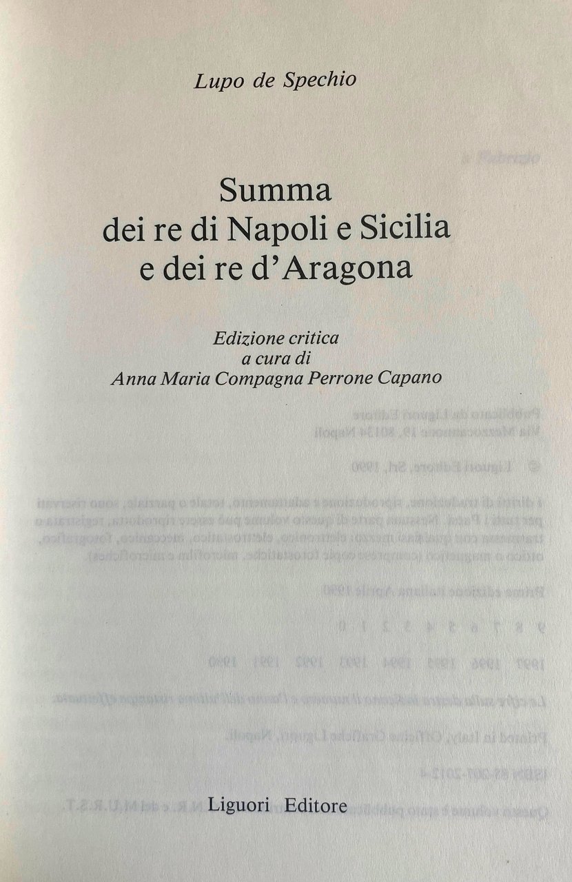 SUMMA DEI RE DI NAPOLI E SICILIA E DEI RE D'ARAGONA. A CURA DI ANNA MARIA PERRONE CAPANO COMPAGNA