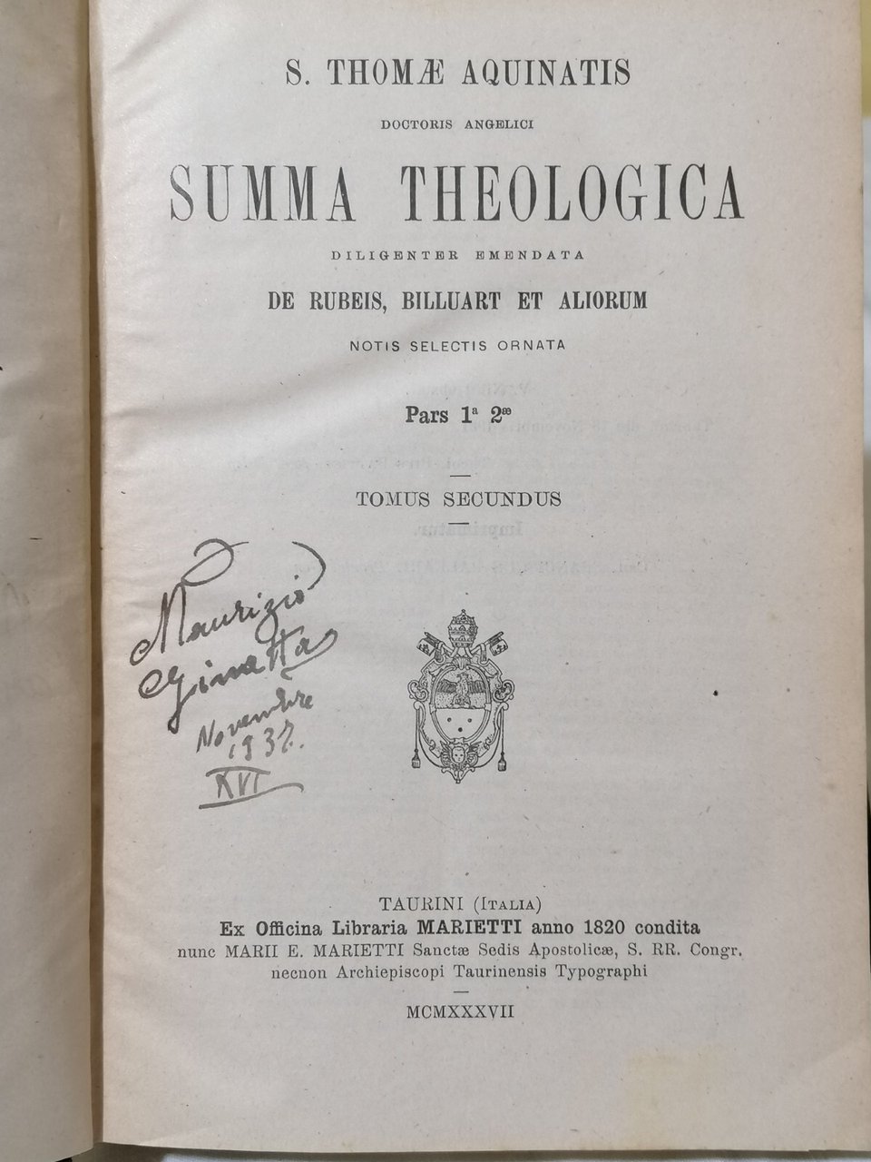 Summa Theologica S. Thomae Aquinatis Marietti 1937 De Rubeis Billuart 6 Volumi