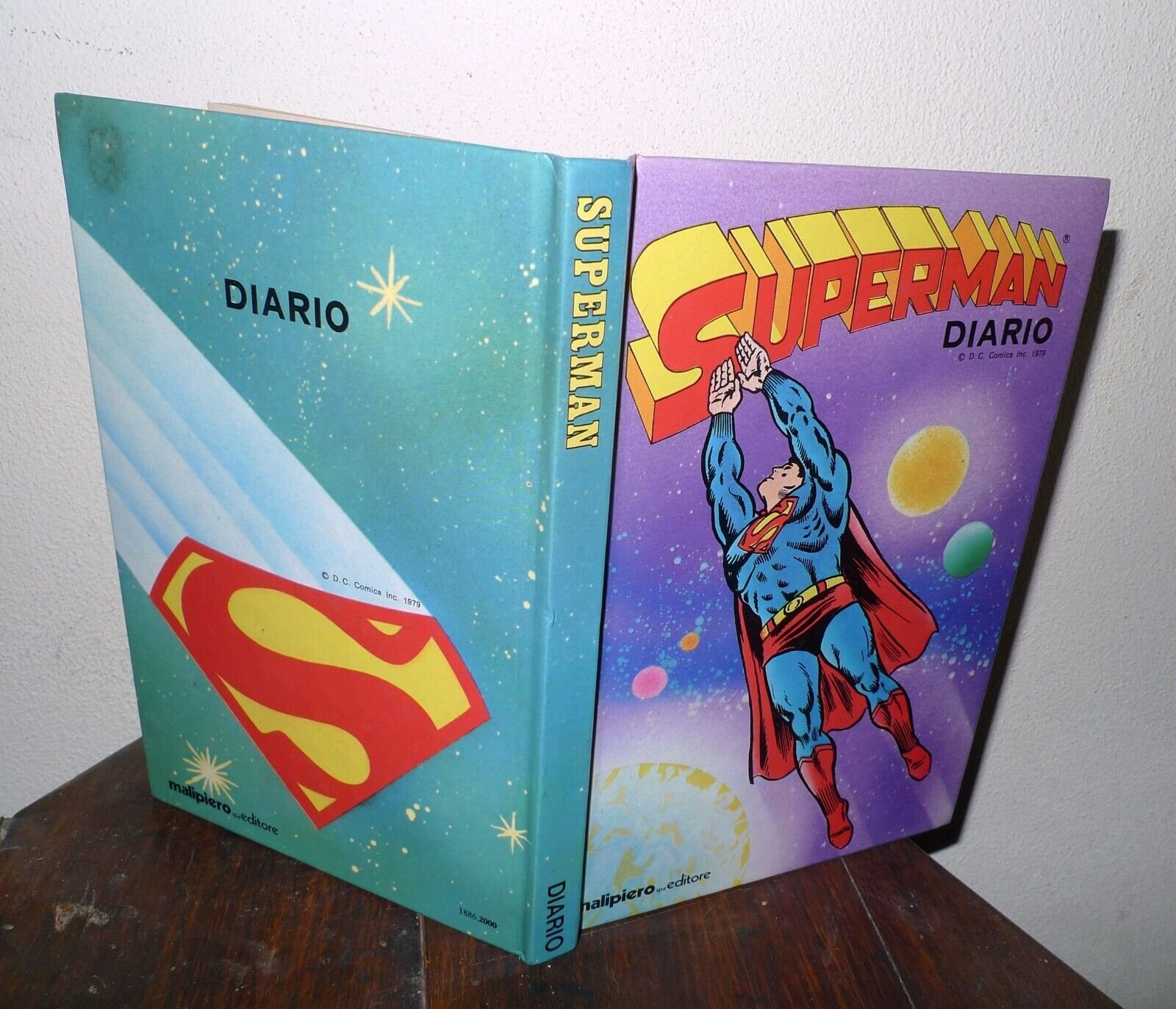 SUPERMAN.DIARIO SCOLASTICO.D.C. Comics / Malipiero editore, Ozzano Dell'Emilia (Bo) 1979,copertina rigida illustrata, cm. 19x13,con illustrazioni a fumetti in nero e a colori,peso: g.300cod.1489CONDIZIONI DEL DIARIO: ottime,minime imperfezioni alla copertina,pagine leggermente ingiallite,fioriture alle ultime pagine
