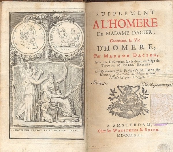 Supplement al'Homere de Madame Dacier, contenant la Vie d'Homere. Avec une dissertation sur la durée du Siége de Troye par M. l'Abbé Banier.