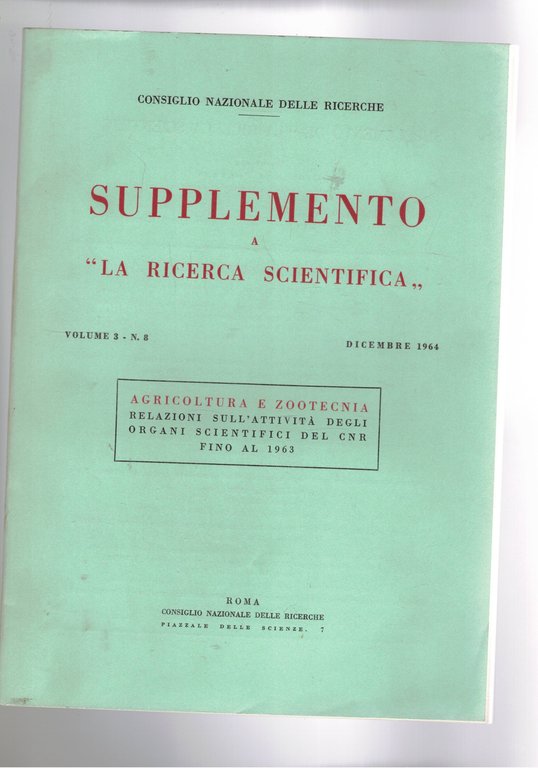 Supplemento a la ricerca scientifica vol. 3° n. 8° . Agricoltura zootecnia, relazioni sull'attività degli organi scientifici nel 1963.