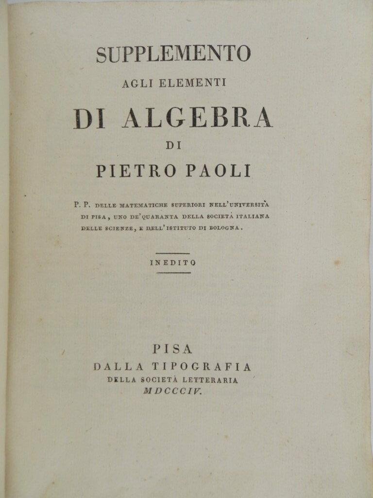 Supplemento agli elementi di algebra di Pietro Paoli. Inedito
