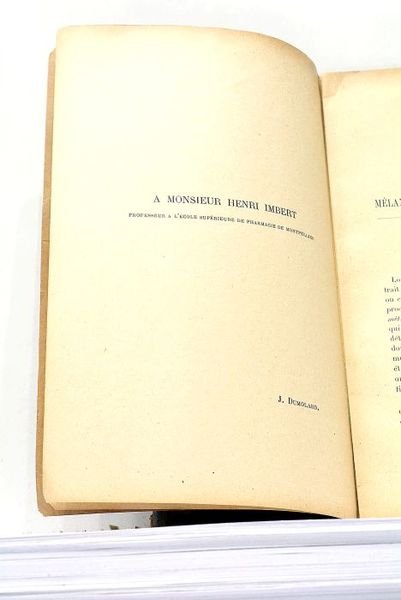 46 pages (16x24cm). Couverture imprimée. Minimes déchirures dans la marge du plat supérieur. Papier un peu roussi. Bon exemplaire. Envoi ancien au plat supérieur et au feuillet de garde: "A Monsieur le docteur Félix Martin, affectueux souvenir". Chimie. Pharmacie.