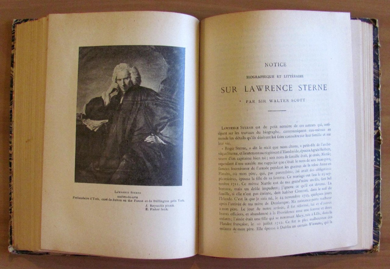 Ouvres de Swift precedute da uno studio su Swift di Prévost-Paradol; Ouvres de Sterne precedute da notizie biografiche su Sterne di Walter Scott. Ritratto di Swift protetto da velina di Geo Vertue, 11 illustrazioni in b/n di Grandville, di cui 9 f.t. e finalini n.t. per il primo titolo. Per Sterne un ritratto f.t. di Fisher e 5 tavole f.t. di Bastin et Nicholls. Collection des Grands Classiques - Paris, 1916. Rilegatura coeva con dorso in tela con titoli e fregi in oro, con piccole mancanze alle cuffie dello stesso. Interno Come Nuovo. 14x19; pp.423. Raro e in Buonissimo stato. , Molto buono (Very Good)