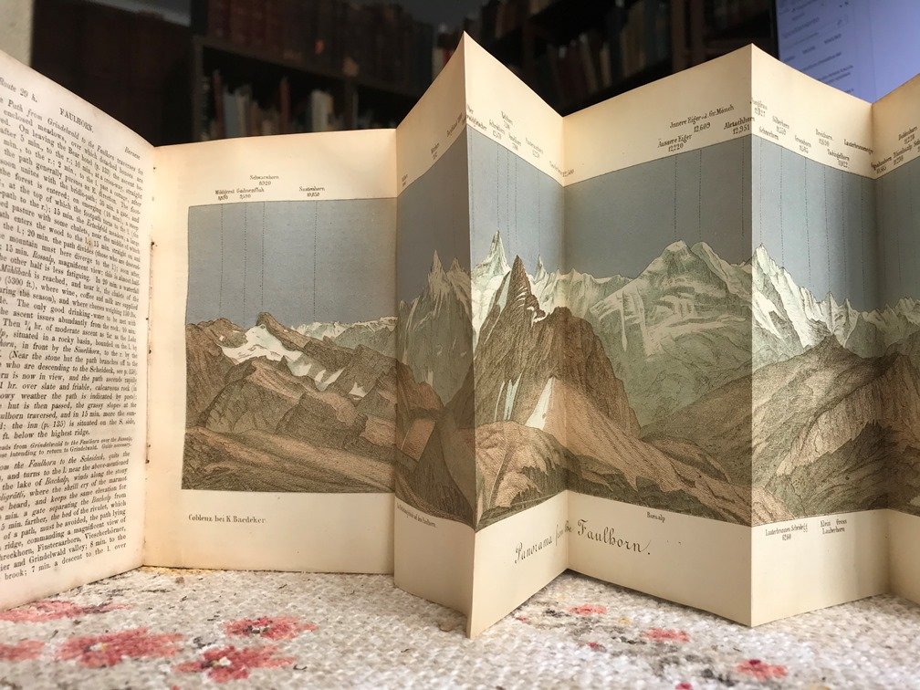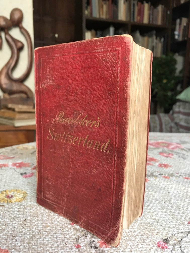Volume in 8 piccolo, tela editoriale (manca il dorso, piatto staccato), titolo al piatto, sguardie, frontespizio, XLII, 461 pp., carte, mappe, panorami ft anche a colori (come da elenco), alcuni pi volte ripiegati, carta della svizzera al fondo del volume. Ricchissima e conosciutissima guida, molto apprezzata per la completezza, accuratezza, facilit di consultazione (soprattutto splendidi i panorami pi volte ripiegati riguardanti le Alpi). Con un'ampia parte dedicata al nord Italia: Lago di Como, Lago maggiore, Lago dOrta, Milano (con una Carta della Citt), Isola Bella, Varallo e molto altro. Ben completa di tutte le tavole ft. Tranne che per le citate mancanze alla brossura e lievi mende duso, in pi che buono stato. Seconda edizione, rara ed ormai introvabile come la prima.