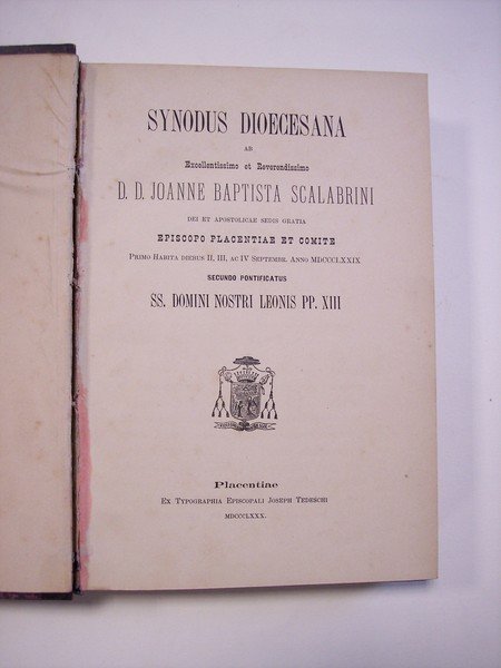 Synodus Dioecesana ab Excellentissimo et Reverendissimo D.D. Joanne Baptista Scalabrini Dei et Apostolicae Sedis Gratia Episcopo Placentiae et Comite Primo