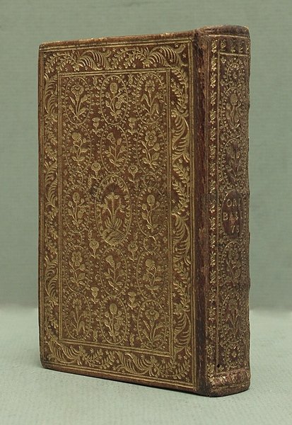 In-12°; 528 pp., marca tipografica al frontespizio ed iniziali xilografiche, testo inquadrato in rosso. Legatura parigina della fine del sec. XVI in marocchino “citron”, realizzata per la biblioteca dell’ambasciatore veneziano a Parigi, Pietro Duodo, con ai piatti elaborata decorazione in oro con fiori diversi: viole, narcisi, gigli, campanule, inseriti all’interno di ghirlande ovali, alternati a fiori più piccoli. Al centro del piatto frontale le armi del diplomatico, ed a quello posteriore inseriti in un ovale i tre gigli di Francia circondati da una banda con il motto “Expectata non eludet”, dorso decorato con lo stesso motivo floreale, con al centro il nome dell’autore, tagli dorati, custodia moderna in tela (lievi spellature ai margini, piccoli fori di tarlo). Iscrizione al foglio di guardia, acquistato dal libraio londinese Cuthell & Martin, “Cuthell Martin, 23 Maggio [18]04”; ex libris “Michel Wittock” al contro piatto: Christie’s Londra, lotto 86 dell’asta 7 luglio 2004.