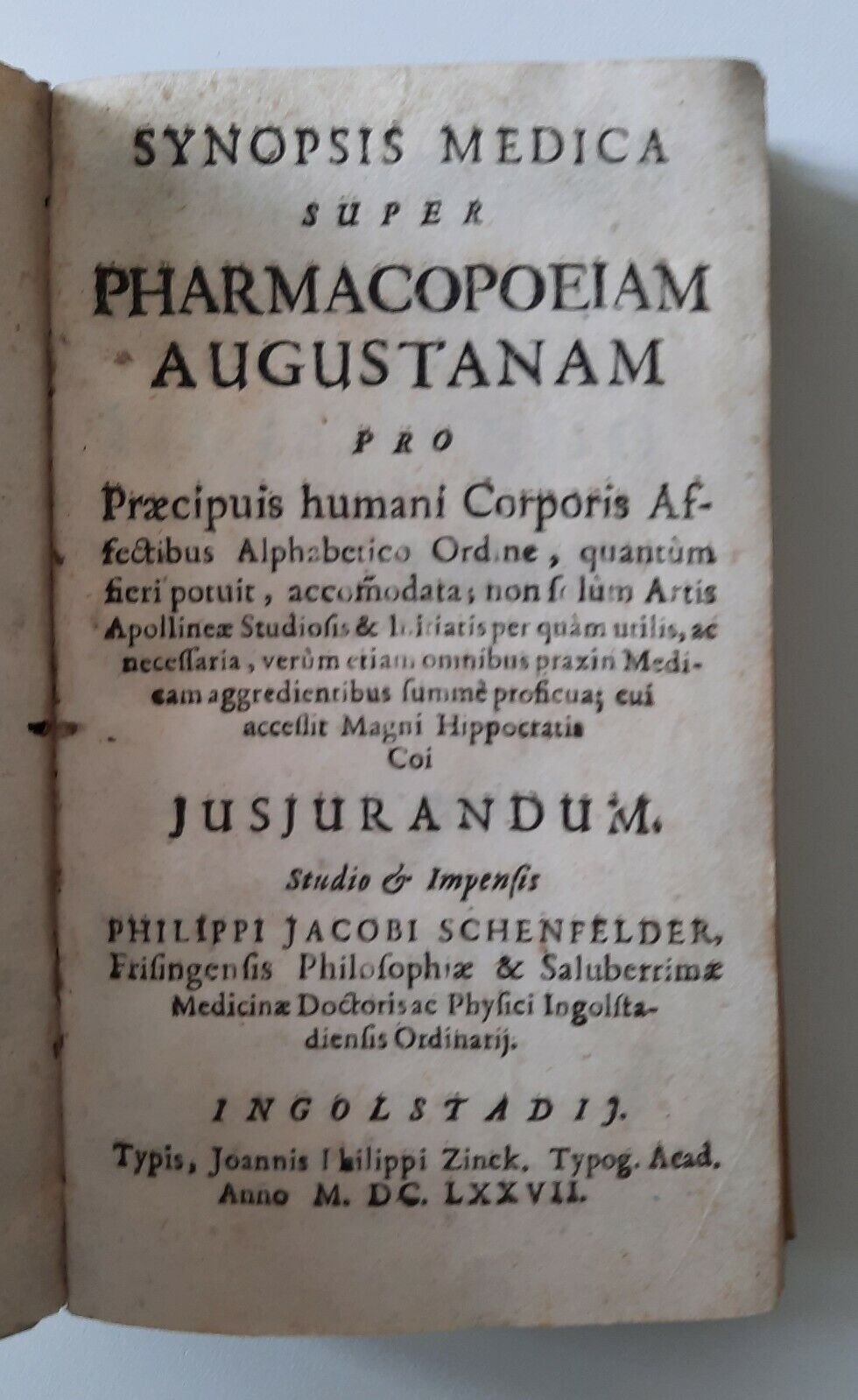 SYNOPSIS MEDICA SUPER PHARMACOPOEIAM AUGUSTANAM INGOLSTADT ZINCK 1677