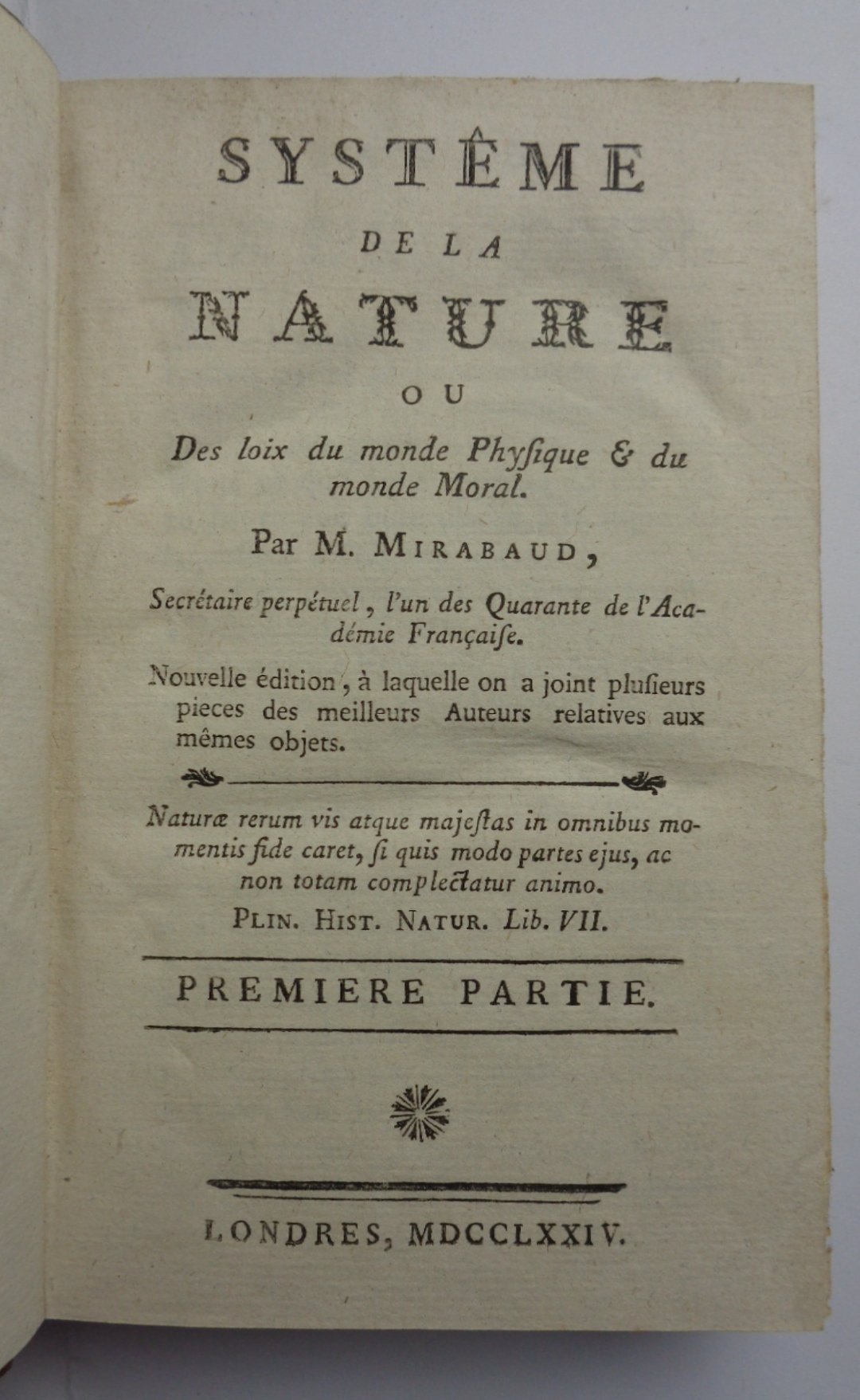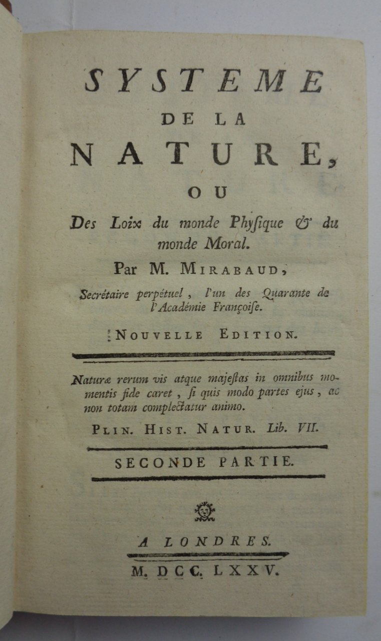SYSTEME DE LA NATURE, ou Des loix du monde physique & du monde moral.