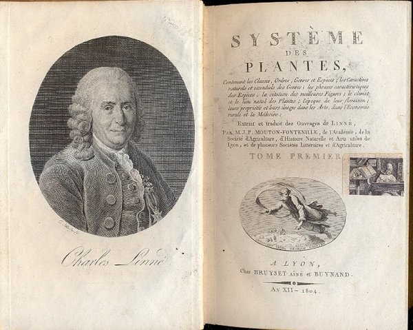 Systeme des plantes, contenant les classes, ordres, genres et especes, les caracteristiques des especes, la citation des meilleures figures; le climat et le lieu natal des plantes; l'epoque de leur floraison; leurs proprietes et leurs usages dans les arts, dans l'economie rurale et la medecine, extrait et traduit des ouvrages de Linné par M. J. P. Mouton Fontenille.